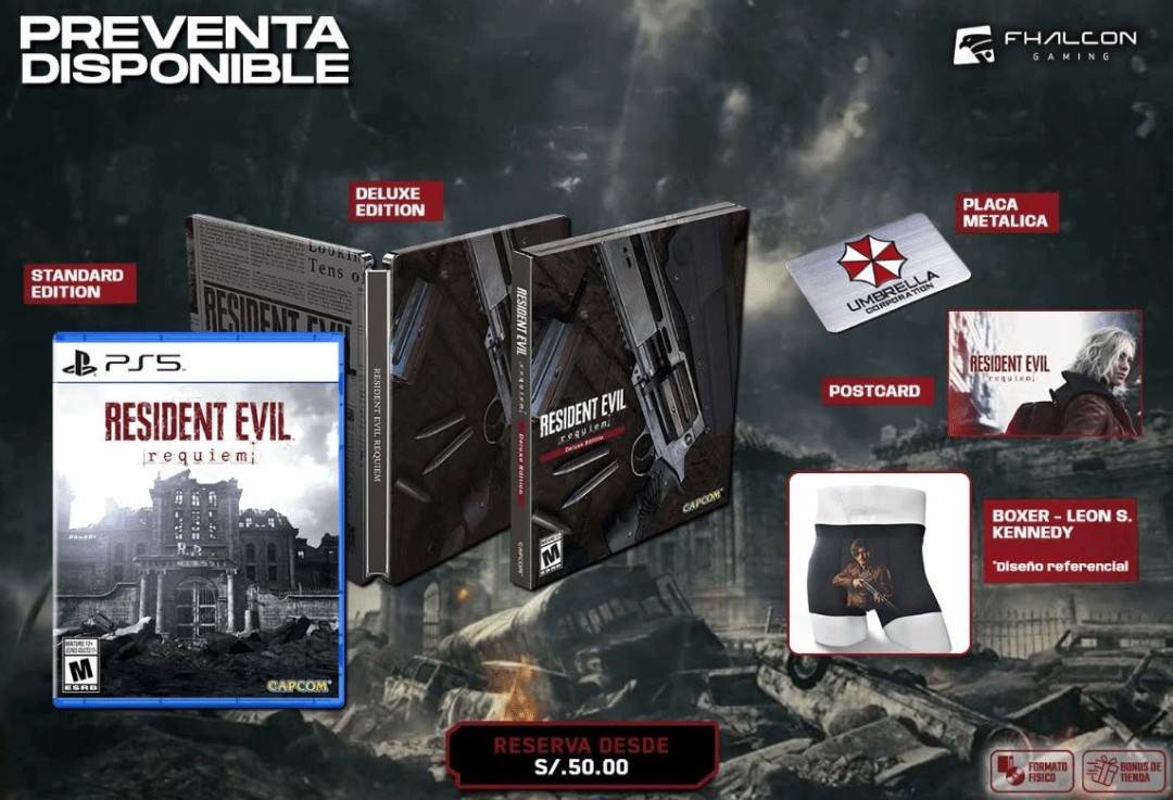 近日游戏博主Noticias PlayStation透露,在秘鲁零售商Fhalcon Gaming Store的《生化危机9:安魂曲》预购宣传图中正好配资,赫然出现印有里昂图案的内裤。