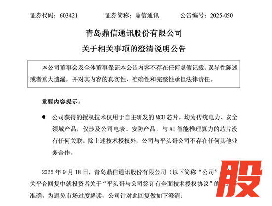 对此,上交所高度关注,并督促公司予以澄清。鼎信通讯19日午间发布澄清说明公告,承认其在相关平台回复中就投资者关于“平头哥与公司签订有全面技术授权协议”的表述不准确。