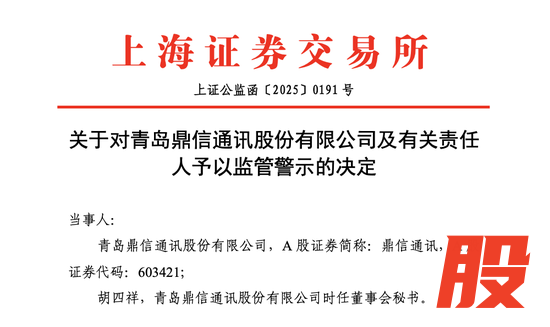 因在互动平台发布涉及平头哥业务的不准确信息,鼎信通讯(维权)(603421)及其时任董秘被上交所予以监管警示。