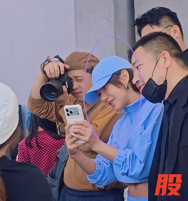 见的她穿着一身蓝色套装,而且上衣露着肚脐,小腹平平且有些许的马甲线,想来其日常坚持锻炼身体。