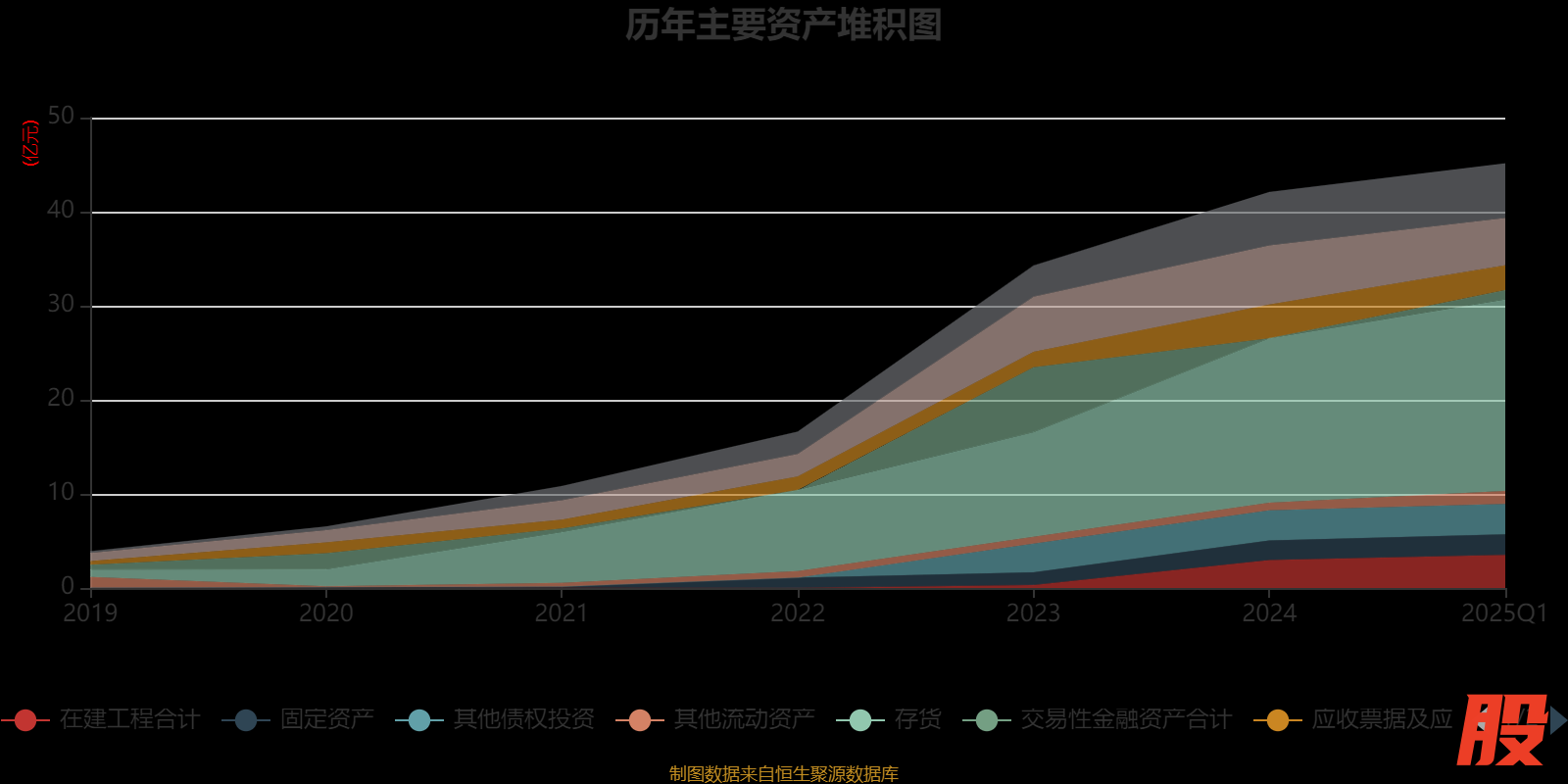 资产重大变化方面,截至2025年一季度末,公司货币资金较上年末减少19.55%,占公司总资产比重下降3.73个百分点;存货较上年末增加16.52%,占公司总资产比重上升3.58个百分点;应收票据及应收账款较上年末减少26.96%,占公司总资产比重下降2.73个百分点;交易性金融资产合计占公司总资产的2.22%,上年末为0。