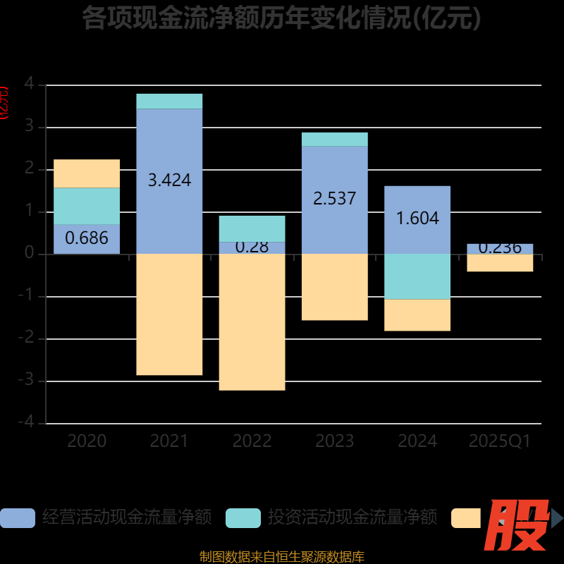 截至2025年一季度末鸿岳资本,公司经营活动现金流净额为2360.21万元,同比增加2.43亿元;筹资活动现金流净额-4136.66万元,同比减少8571.42万元;投资活动现金流净额-74.47万元,上年同期为-121.51万元。