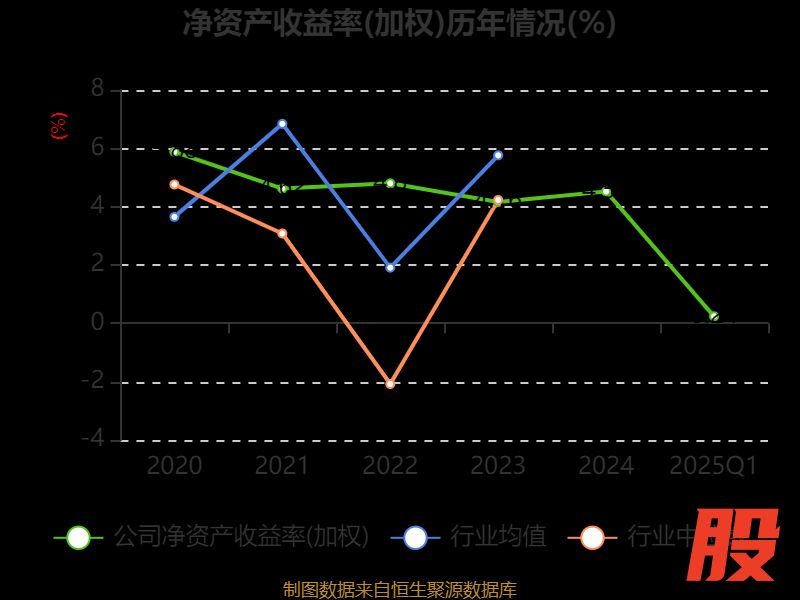 盈利能力方面, 2025年一季度公司加权平均净资产收益率为0.24%,同比下降0.94个百分点。公司2025年第一季度投入资本回报率为0.35%,较上年同期下降0.8个百分点。