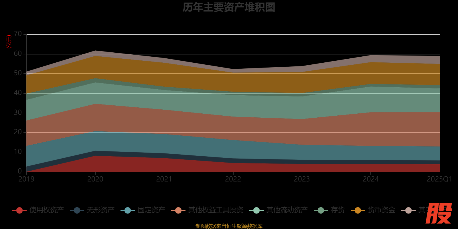 资产重大变化方面,截至2025年一季度末,公司其他流动资产较上年末减少8.04%,占公司总资产比重下降1.64个百分点;其他权益工具投资较上年末增加2.09%,占公司总资产比重上升0.8个百分点;存货较上年末增加30.13%,占公司总资产比重上升0.7个百分点;预付款项较上年末增加350.13%,占公司总资产比重上升0.42个百分点。